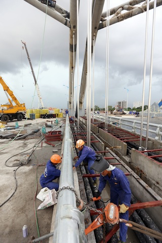 Nhà thầu gói thầu 13 (Cienco1) lắp đặt cáp giằng cầu Đông Trù